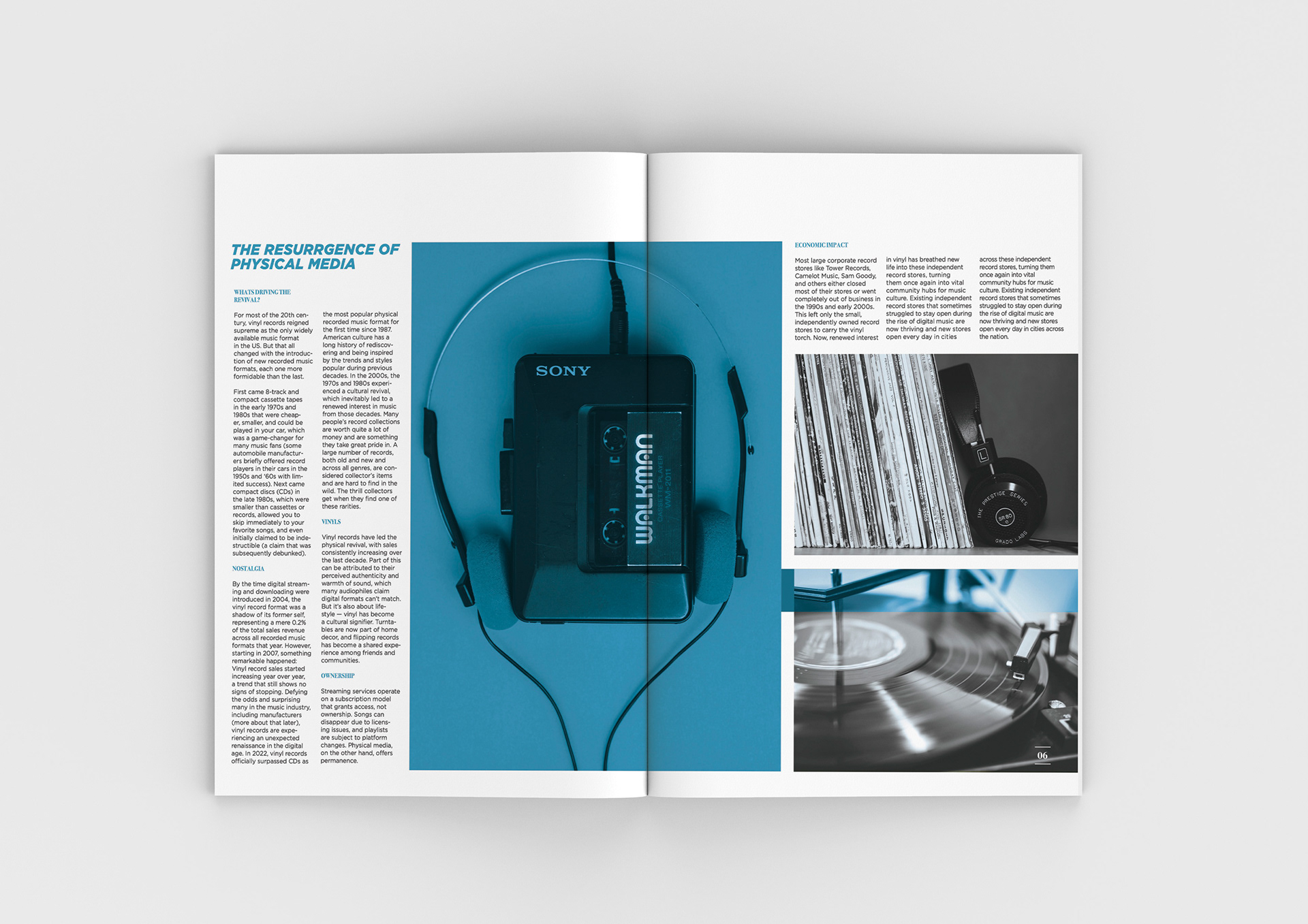 For this publication design, I was asked to create a magazine from scratch, starting with the creation of a unique masthead that sets the tone for the magazine's identity. The subject matter was open-ended, and thus, I was free to choose a subject that was close to my interests and taste. The project included the exploration of editorial structure, composition of layout, typography, and visual appearance.